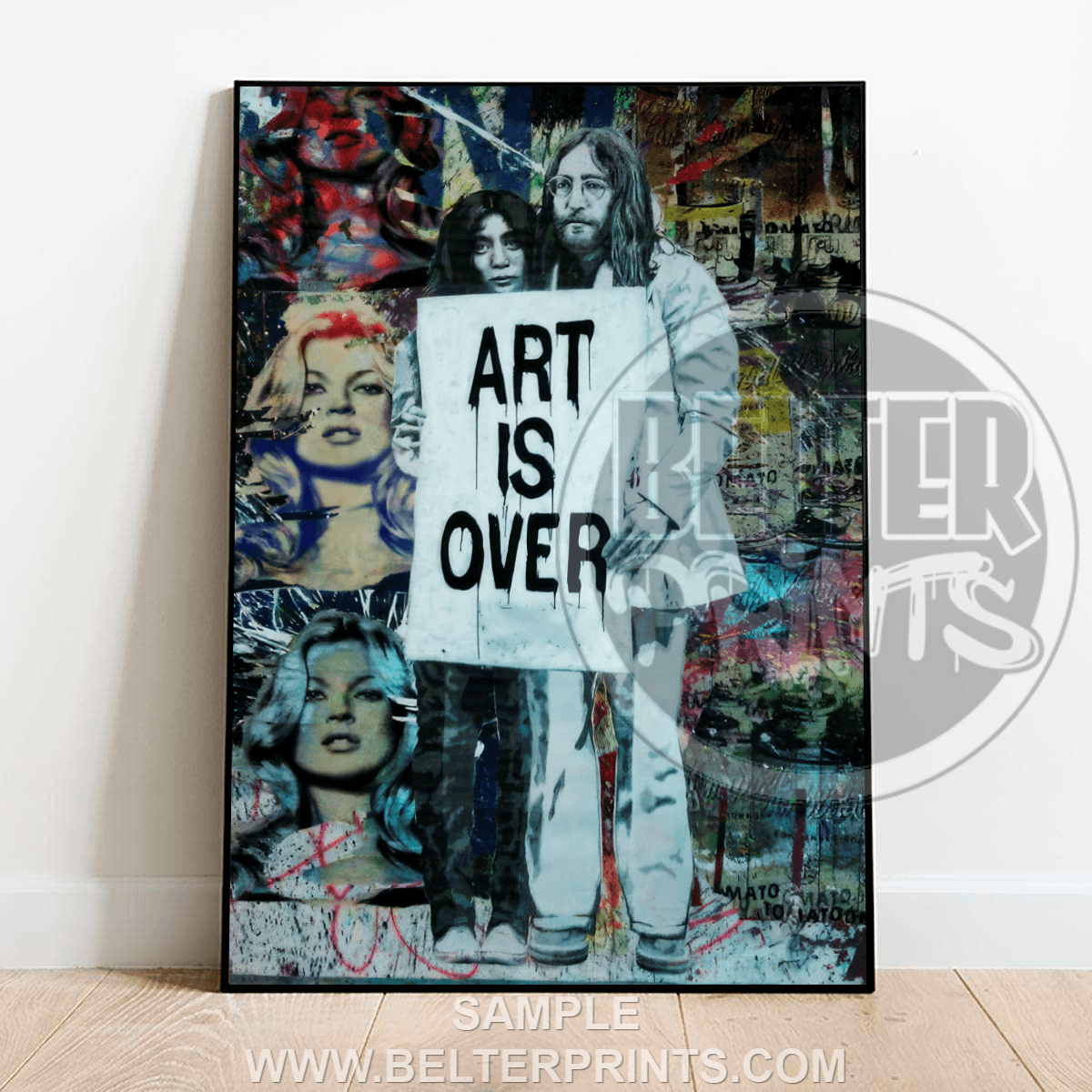 Rebellion never dies. Art Is Over reimagines the iconic protest moment of John Lennon and Yoko Ono — here twisted into a bold urban remix where their famous sign becomes a spray-soaked statement. Against a chaotic backdrop of pop culture icons, this print explodes with colour, irony, and attitude.